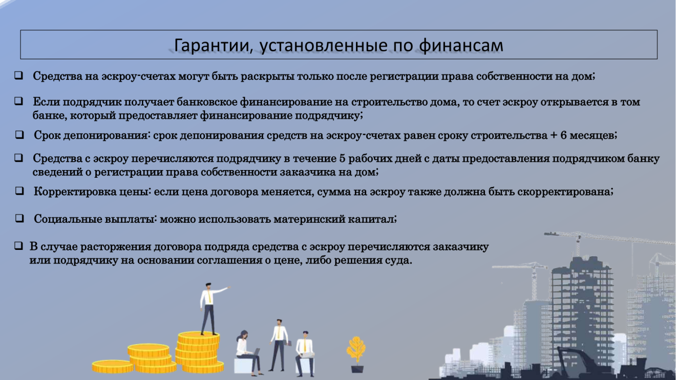 О строительстве жилых домов по договорам строительного подряда с использованием счетов эскроу